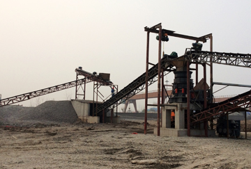 河卵石從船上到岸后先經過一道簡單篩分,篩分出一部分成品,大于31.5MM以上的物料經皮帶機輸送至HPT300多缸液壓圓錐破,破碎后的物料經皮帶機輸送至3Y2460振動篩進行篩分,大于31.5MM的物料經返料皮帶再次進入HPT300多缸液壓圓錐破進行破碎,到達要求粒徑的物料經振動篩篩分出三種成品(0-5-16-31.5mm)