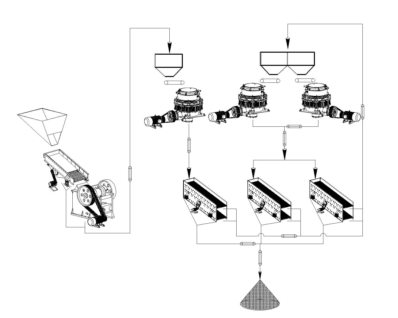 該客戶是南非當地的礦業老板,之前一位朋友從公司購買過一條小型石料破碎線,這次經朋友介紹購買了這條錳礦石破碎生產線。主要設備:PE750*1060顎破一臺、CS160圓錐破三臺。