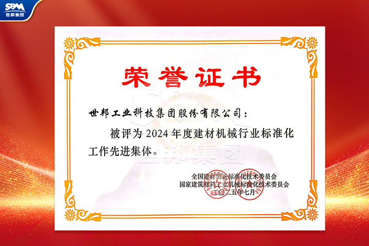近日,經全國建材裝備標準化技術委員會及國家建筑材料工業機械標準化技術委員會嚴格評審,世邦集團憑借在行業標準體系建設中的突出貢獻,被授予“2024年度建材機械行業標準