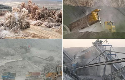 采石場的粉塵主要來源于穿孔、爆破、采裝、裝載、排巖和運輸等作業過程,其中穿孔作業是露天采石場細小粉塵的主要來源,其次爆破作業會瞬間產生高濃度的粉塵,還伴隨有毒有害的氣體生成,該類氣體對人體的危害更大。