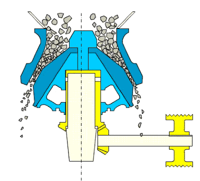圓錐破碎機(jī)工作中,給料要均勻,不能偏移。如果給料不均會(huì)出現(xiàn)生產(chǎn)能力降低,產(chǎn)品粒度過(guò)大,彈簧動(dòng)作頻繁,碗形軸承壓力大,功耗上升。壓力過(guò)大也會(huì)發(fā)生“飛車(chē)”和斷軸事故。