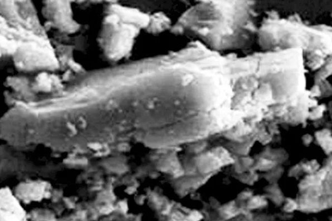 ▲采用“破”的原理,顯微鏡下石灰石粉體上的暗紋