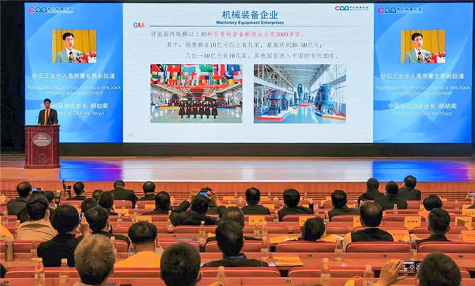 在主旨演講環(huán)節(jié),中國砂石協(xié)會胡幼奕會長做了《砂石工業(yè)步入高質(zhì)量發(fā)展新軌道》的主旨報(bào)告。胡會長不僅從國家和地方政府發(fā)布的政策、未來經(jīng)濟(jì)發(fā)展趨勢、砂石骨料的市場需求等層面深度解析了目前砂石行業(yè)的發(fā)展?fàn)顩r,更從行業(yè)角度深度剖析了砂石行業(yè)的未來發(fā)展方向和發(fā)展模式,指出高品質(zhì)機(jī)制砂將是未來基建用砂石主要供應(yīng)源,所以砂石企業(yè)要充分利用礦石產(chǎn)業(yè)得天獨(dú)厚的條件,要敢于思變,通過理念、科技、模式等全方位的顛覆創(chuàng)新,為砂石產(chǎn)業(yè)綠色發(fā)展和高質(zhì)量發(fā)展提供堅(jiān)實(shí)支撐,在保護(hù)好環(huán)境的同時讓礦山產(chǎn)業(yè)高質(zhì)量發(fā)展。