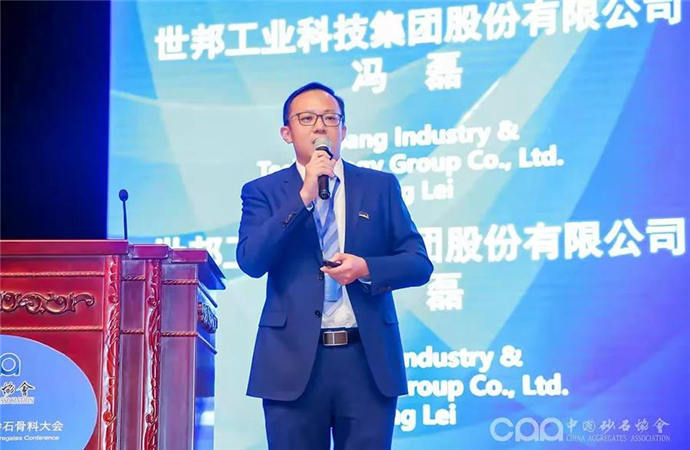 此次大會上,世邦集團(tuán)營銷總監(jiān)馮磊先生在砂石骨料工藝與裝備專題環(huán)節(jié)做《砂石行業(yè)高質(zhì)量發(fā)展理念下的技術(shù)和裝備升級》的主題報(bào)告,他在報(bào)告中指出: