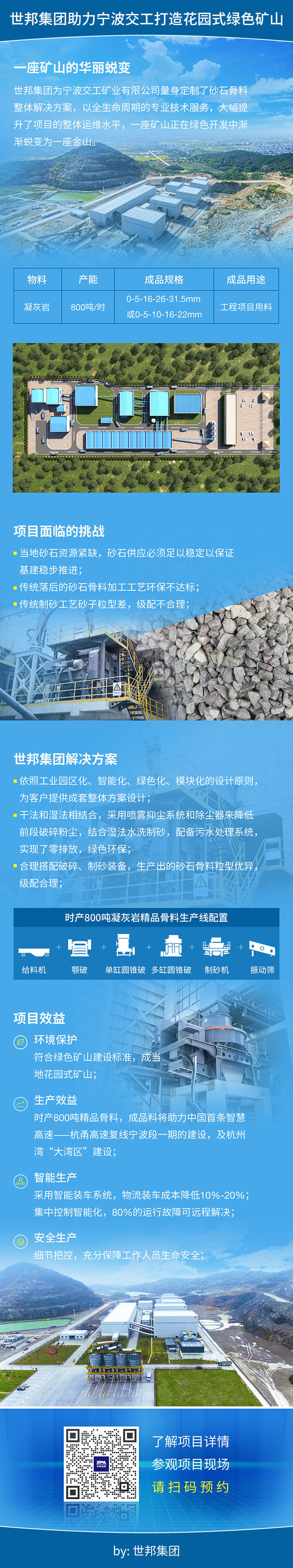 世邦集團(tuán)為寧波交工礦業(yè)有限公司量身定制了砂石骨料整體解決方案,以全生命周期的專業(yè)技術(shù)服務(wù),大幅提升了項(xiàng)目的整體運(yùn)維水平,一座礦山正在綠色開發(fā)中漸漸蛻變?yōu)橐蛔鹕健?/p>