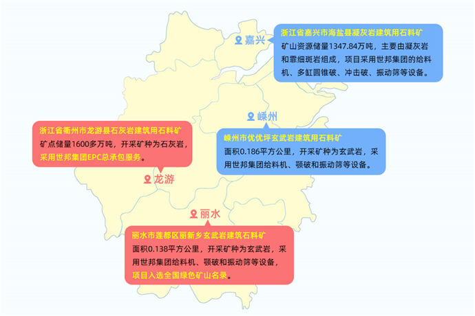 海新礦業采用世邦的給料機、多缸圓錐破、沖擊破、篩分等設備,項目投產后將為浙北地區交通、建筑等工程提供優質的砂石材料保障。