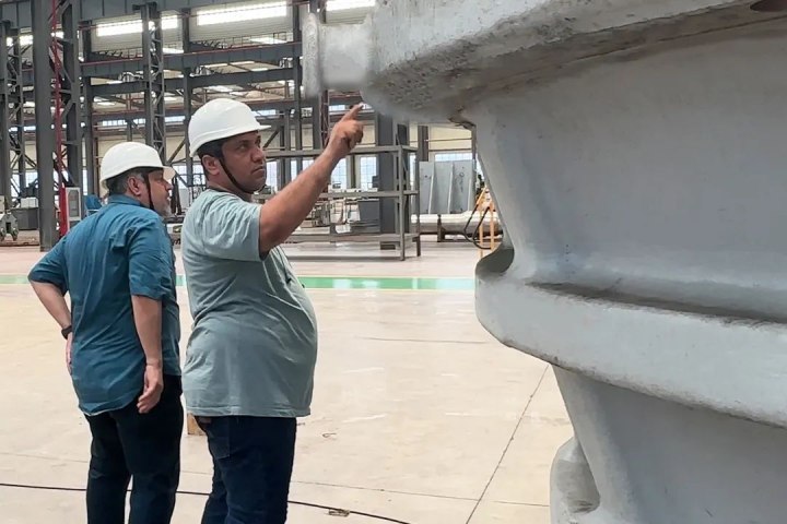 在世邦集團(tuán)上海臨港工廠,中東客戶一行首先參觀了旋回破碎機(jī)的生產(chǎn)線。他們對下料車間現(xiàn)代化的大型數(shù)控機(jī)床和標(biāo)準(zhǔn)化的生產(chǎn)工藝流程表示非常認(rèn)可。