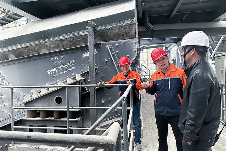 抵達客戶現場時產線正在生產狀態,回訪團首先對生產線進行了全面性的評估,整體狀態較為平穩。客戶指出振動篩篩網有時會出現堵塞問題,影響下料。世邦售后人員立刻做出響應,對振動篩進行了全面檢查后發現是長期生產導致的粘土過多,于是為客戶進行了篩網清理,并叮囑客戶針對篩網要定期清理以免物料堆積影響生產。交談中客戶表示,世邦設備使用至今非常滿意,遇到的一些問題反饋后,也會派相關人員及時前來解決,是值得信任的設備廠家。