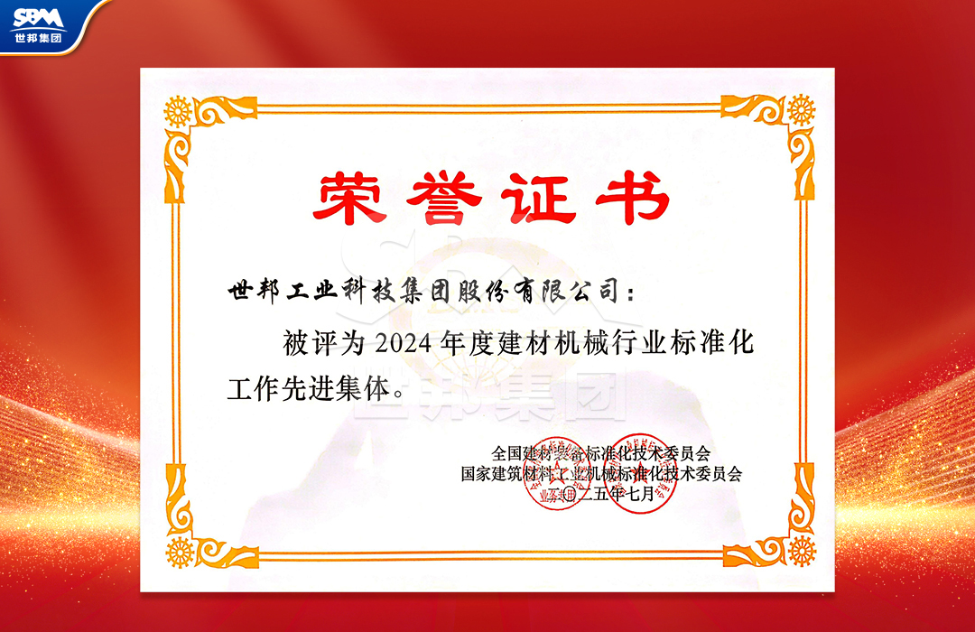 作為在礦山裝備制造領域專注發展近40年的專業企業,世邦集團長期將標準化建設納入企業發展戰略。多年來,公司深度參與國家、行業標準體系建設,參與起草《砂石骨料制備成套裝備技術要求》、《建材機械行業綠色工廠評價要求》、《干法制砂生產線技術要求》等20余項國家及行業標準。這些標準的制定和實施,有效推動了行業技術水平的整體提升。