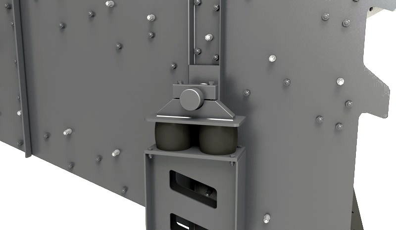 S5X振動篩篩機支撐采用成本更高的橡膠彈簧,與金屬彈簧相比,具有使用壽命長、耐腐蝕,運行平穩、噪音低、對地基沖擊小等優點