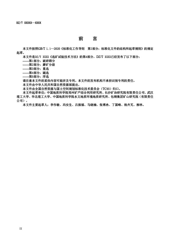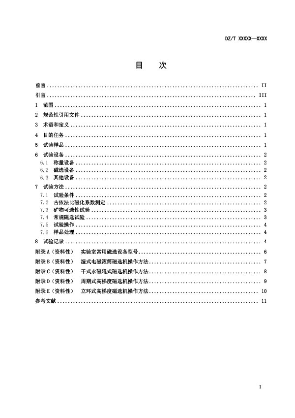 本文件給出了固體礦產實驗室磁選試驗相關的術語和定義,明確了目的任務、試驗樣品、試驗設備試驗方法和試驗記錄等要求。 本文件適用于固體礦產實驗室選礦試驗中的磁選試驗。