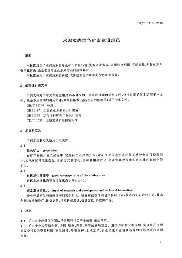 水泥灰巖綠色礦山建設規范